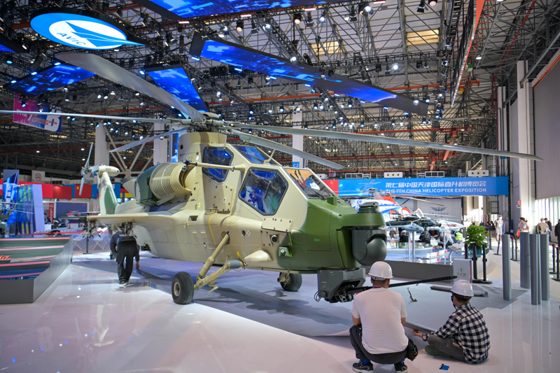 工作人员在天津直博会直升机馆内布展。10月14日,第七届中国天津国际直升机博览会举行媒体探馆活动。本届天津直博会将于10月16日至19日在天津空港经济区举行。目前,各项筹备工作已进入冲刺阶段。新华社记者 孙凡越 摄