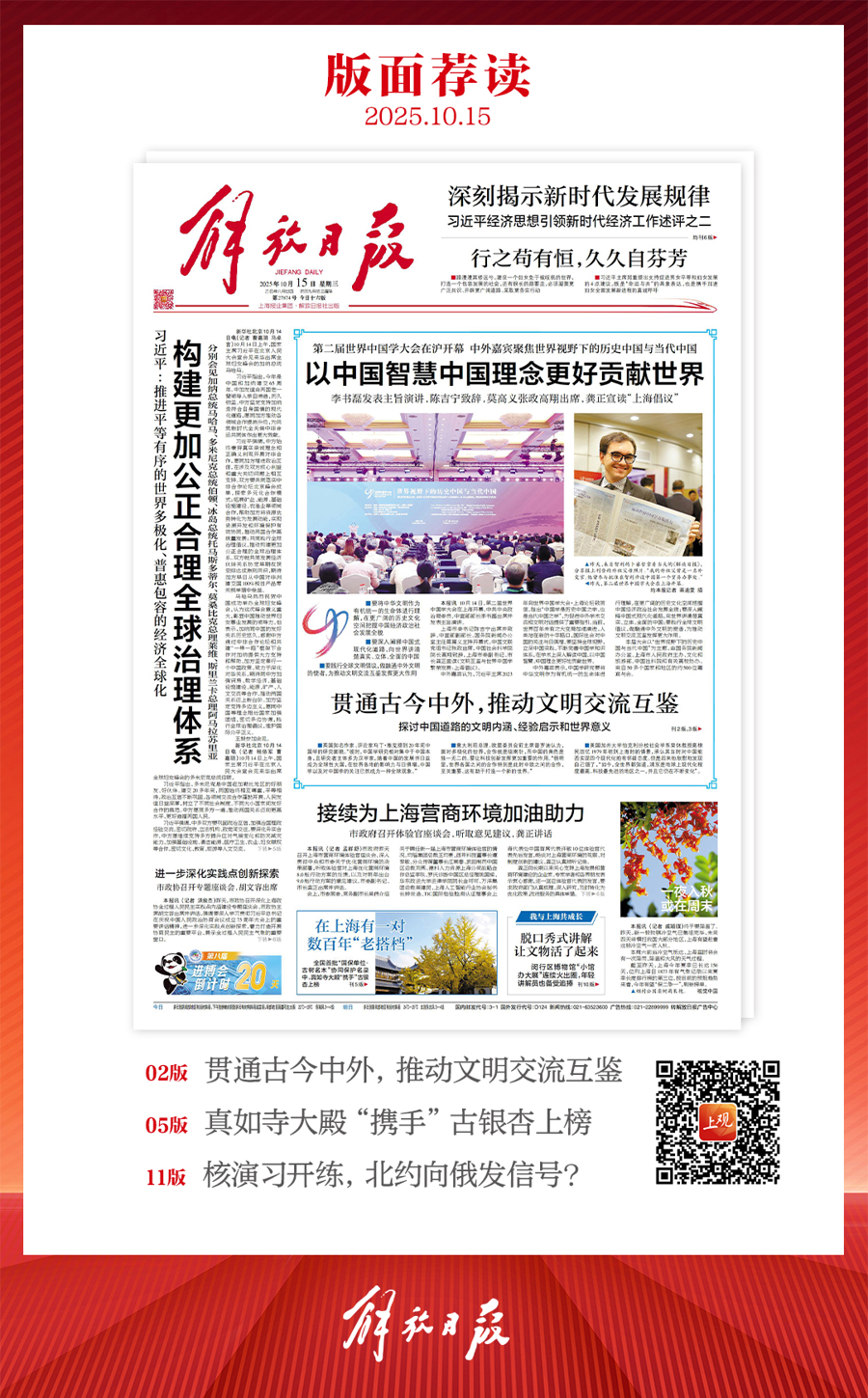 早上好!上观新闻『早读』来啦!2025年10月15日 星期三 农历八月廿四上海多云到阴局部地区有短时阵雨,下午到傍晚转阴到多云有时有阵雨或雷雨,局部地区雨量可达大雨,22~29℃